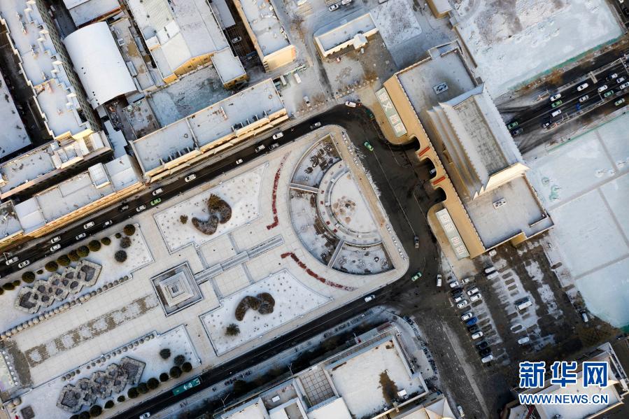 3月1日拍攝的雪后甘肅省武威市南城門廣場(無人機(jī)照片)。新華社發(fā)(姜愛平 攝)