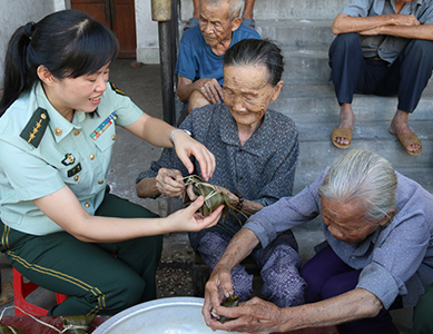 廣西欽州邊檢站官兵端午節(jié)前慰問敬老院孤寡老人??