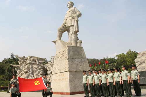 預(yù)備黨員官兵面向黨旗宣誓?