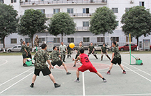 官兵進(jìn)行氣排球比賽