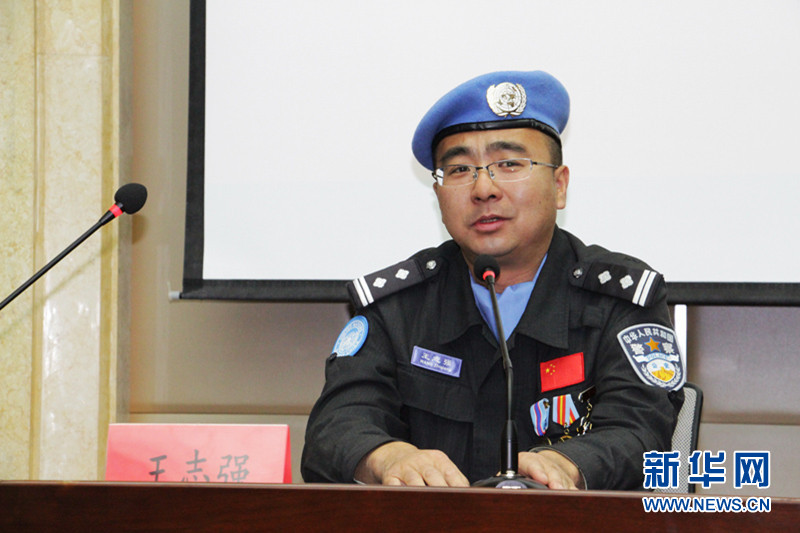 ????授課期間,維和英雄楊占江為學員們做了以《中國力量 藍盔風采》為題目的演講,講述了第二支赴利比里亞維和警察防暴隊遠赴西非、攻堅克難、歷盡艱辛的維和經歷,分享了他們遠離祖國、恪盡職守、感人至深的心路歷程,集中展現(xiàn)了防暴隊在復雜動蕩的局勢、艱苦惡劣的環(huán)境、埃博拉疫情肆虐的形勢下取得的卓越成就,充分展示了維和防暴隊文明之師、威武之師、和平之師的良好形象。授課結束后,維和英雄與學員們進行了座談交流,防暴隊副隊長王志強和隊員楊占江一一解答了學員們提出的問題,并與現(xiàn)場學員合影留念。(格日勒朝克圖 張志敏)