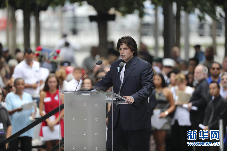 ????9月11日,在美國紐約,一名“9·11”恐怖襲擊事件遇難者的兒子在紀(jì)念活動(dòng)上宣讀遇難者姓名。