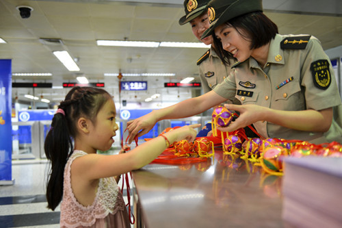 ????抓好每一個細節(jié),熱情服務中外游客,筑牢“國門”防線……30多年來,廣西桂林邊檢站創(chuàng)新工作方法,提高業(yè)務水平,勾勒出一道亮麗的空港邊檢風景線。2013年10月14日,桂林市委、市政府聯合下文授予桂林邊檢站“模范邊檢站”榮譽稱號。