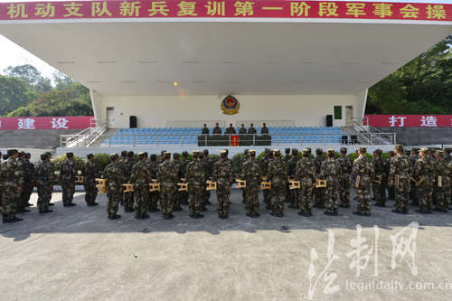 圖為機(jī)動(dòng)支隊(duì)新兵復(fù)訓(xùn)第一階段軍事會(huì)操前隊(duì)伍集結(jié),做動(dòng)員講話(huà)