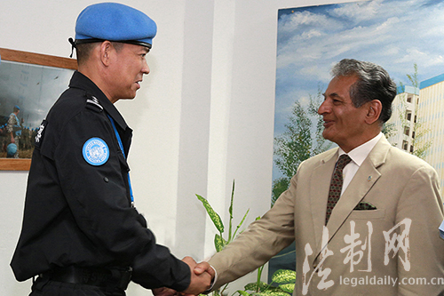 圖為聯(lián)利團秘書長特別代表法里德·扎里夫接見防暴隊陳利華政委