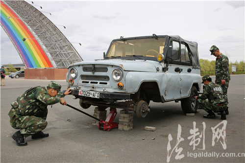 圖為二連邊防檢查站官兵對(duì)涉嫌走私車輛進(jìn)行分解檢查