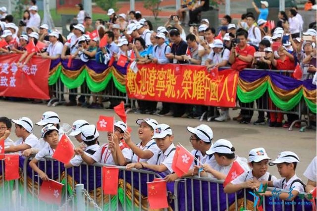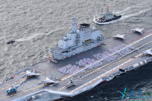 ↑7月7日上午,海軍航母編隊(duì)抵達(dá)香港。700余名官兵在遼寧艦飛行甲板上列隊(duì)排成“香港你好”字樣,以海軍獨(dú)有的方式向香港市民表示親切、誠摯問候。解放軍駐香港部隊(duì)提供