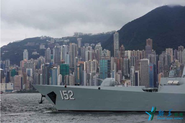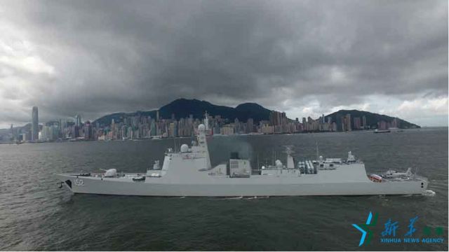 ↑7月7日,海軍煙臺(tái)艦停泊在香港昂船洲碼頭。新華社記者 曾濤 攝