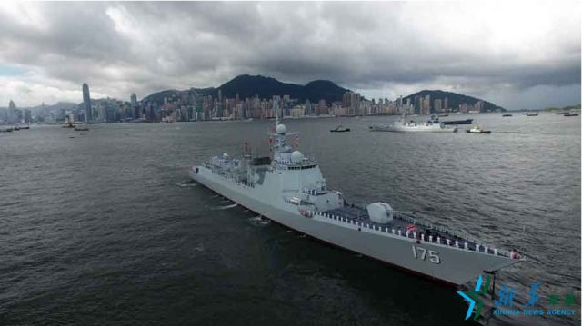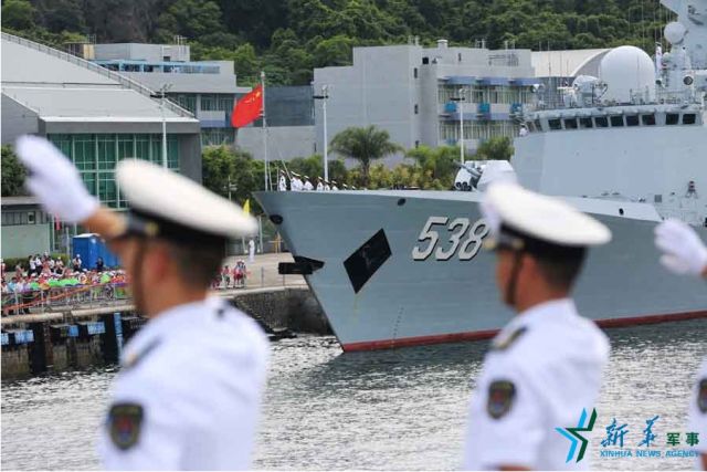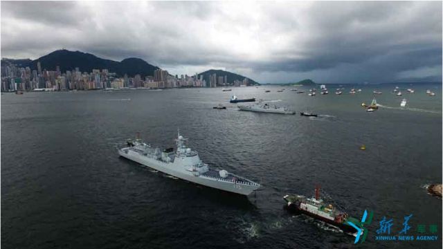 ↑7月7日,海軍濟(jì)南艦緩緩駛?cè)胂愀郯捍薮a頭。新華社記者 曾濤 攝