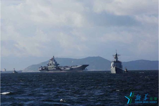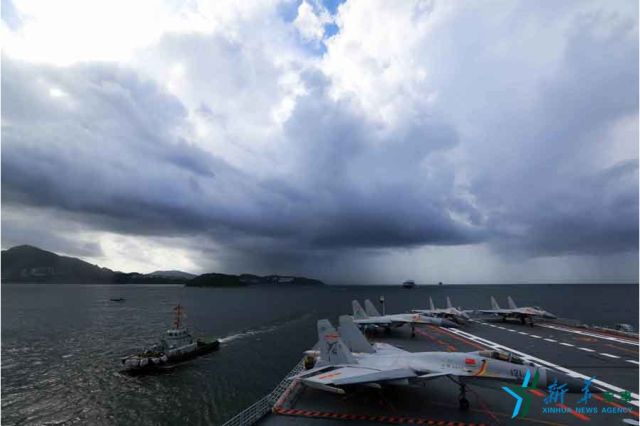 ↑7月7日,遼寧艦(左)駛?cè)脲^泊地。新華社記者 曾濤 攝