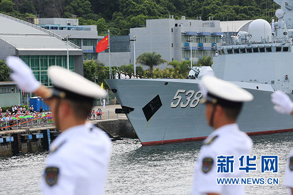 新華社香港7月7日電(記者曾濤、顏昊)7日上午,正在執(zhí)行跨區(qū)機(jī)動(dòng)訓(xùn)練任務(wù)的中國(guó)人民解放軍海軍航母編隊(duì)抵達(dá)香港,參加香港回歸祖國(guó)暨中國(guó)人民解放軍進(jìn)駐香港20周年慶?;顒?dòng),受到香港特區(qū)政府和民眾熱烈歡迎。
