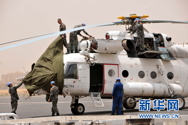 “建軍節(jié)前夕,在中國(guó)、蘇丹兩國(guó)兩軍有關(guān)部門(mén)的大力協(xié)同下,維和直升機(jī)分隊(duì)直升機(jī)試飛成功,具有標(biāo)志性意義?!敝袊?guó)駐蘇丹大使館武官關(guān)愛(ài)兵對(duì)新華社記者說(shuō)。