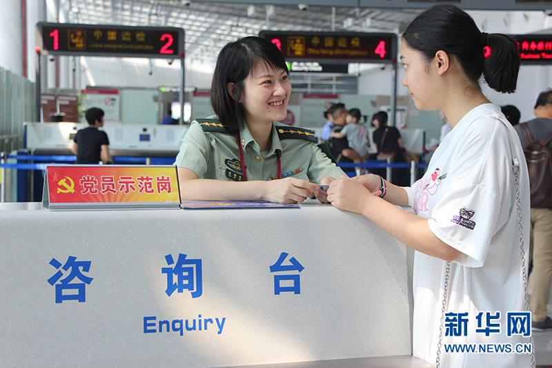 泉州邊檢站檢查員熱情服務(wù)旅客。林澤斌 攝