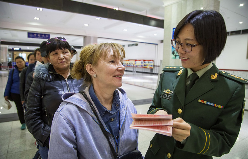 ????旅游旺季來(lái)臨,滿洲里口岸近日迎來(lái)客流高峰,滿洲里邊檢站先后開(kāi)通“兒童與老年人團(tuán)組”、“互市貿(mào)易區(qū)”和“需幫扶人員”等7條專用服務(wù)通道,推出“臺(tái)外專屬引導(dǎo)”、 “大型團(tuán)組預(yù)約通關(guān)”等服務(wù)舉措,提高了驗(yàn)放時(shí)效,打造了溫馨、和諧的通關(guān)環(huán)境。年內(nèi)以來(lái),滿洲里邊檢站還開(kāi)辦4期俄語(yǔ)培訓(xùn)班,提升檢查員外語(yǔ)執(zhí)勤水平,為出入旅客提供優(yōu)質(zhì)服務(wù)。