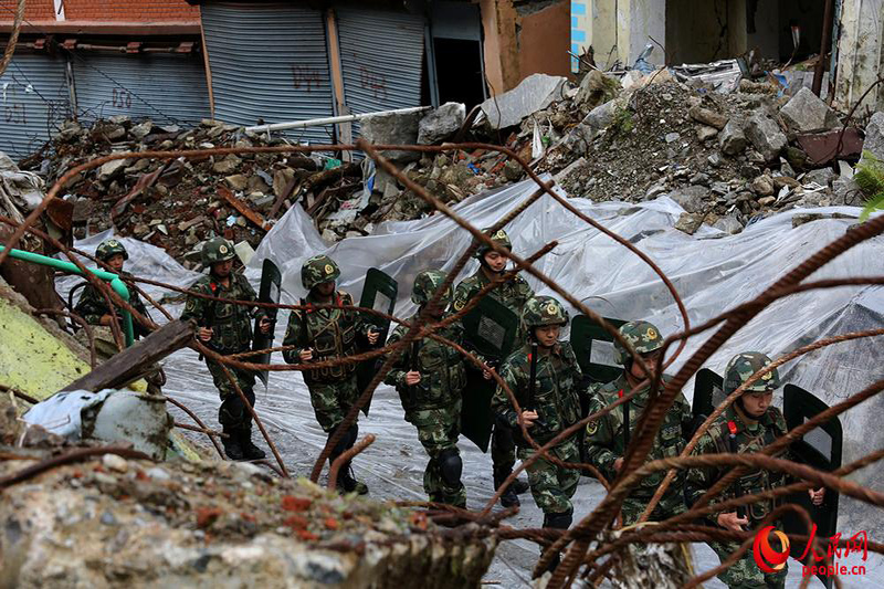 在巡邏中通過危險路段。黃恩 攝