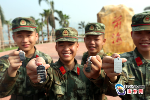 ????“楊志!”“到!”“你是一中隊(duì)第幾名戰(zhàn)士?”“我是一中隊(duì)第169名戰(zhàn)士,身為模范集體一員我深感驕傲!”“現(xiàn)在授予你榮譽(yù)牌,請(qǐng)入列!”9月5日,在中國(guó)人民抗日戰(zhàn)爭(zhēng)暨世界反法西斯戰(zhàn)爭(zhēng)勝利72周年之際,廣東邊防六支隊(duì)一中隊(duì)指導(dǎo)員趙文超與戰(zhàn)士們鏗鏘有力的對(duì)話在深圳前海這塊創(chuàng)新改革的土地上響亮。當(dāng)天,該中隊(duì)向每一名官兵授予了一枚銀光閃閃的專(zhuān)屬榮譽(yù)牌。榮譽(yù)牌正面刻有中隊(duì)番號(hào)、擁有者姓名和自己的編號(hào),背面中隊(duì)精神“越艱苦越堅(jiān)持,越寂寞越堅(jiān)定,越平凡越堅(jiān)守”幾個(gè)大字十分顯眼。在榮譽(yù)牌授予儀式上,全體官兵熱血沸騰,斗志昂揚(yáng),面對(duì)隊(duì)旗莊嚴(yán)舉起握拳的右手,用鏗鏘的誓言致敬意、表決心、釋忠誠(chéng)。