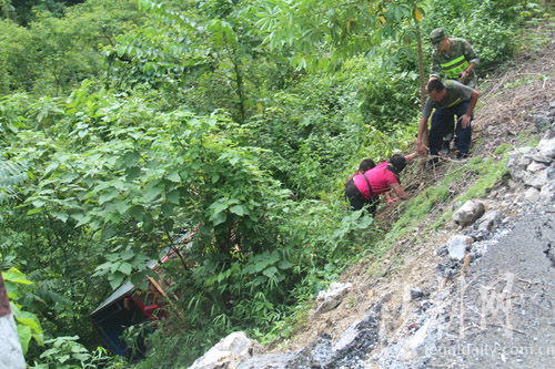 ????獲悉情況后,該所立即向百南鄉(xiāng)衛(wèi)生院通報情況,并組織官兵趕赴現(xiàn)場施救。邊防官兵在現(xiàn)場發(fā)現(xiàn)一輛三輪車側(cè)翻在半山坡,山坡下是10多米深的河流?!昂迷谟袠鋽r住,要不然后果不敢想象。”圍觀群眾李師傅說道。