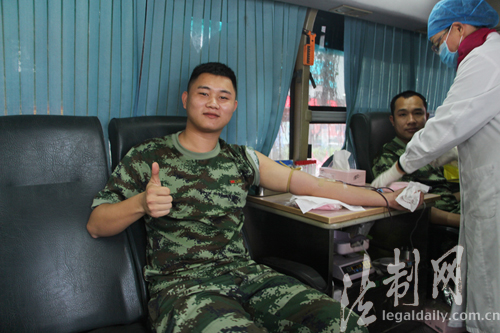圖為官兵為“第二故鄉(xiāng)”獻血