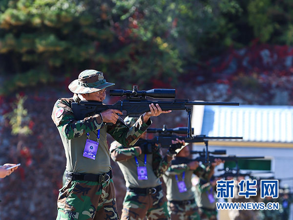 10月18日,參賽隊員在多種姿勢狙擊課目中采用立姿進(jìn)行狙擊。新華社發(fā)(安曉惠 攝)