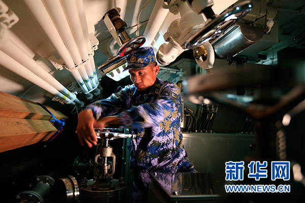 任務(wù)中,肖海生在檢查AIP系統(tǒng)(10月30日攝)。新華社發(fā)(練偉 攝)