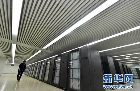 ????陽(yáng)光和煦,在天津?yàn)I海新區(qū)的國(guó)家超級(jí)計(jì)算天津中心,一棟橘紅色大樓外墻上,“天河”兩個(gè)大字格外醒目。近千平方米的主機(jī)房?jī)?nèi),由國(guó)防科技大學(xué)計(jì)算機(jī)學(xué)院研制的我國(guó)首臺(tái)千萬(wàn)億次超級(jí)計(jì)算機(jī)系統(tǒng)——天河一號(hào),排列成13行,猶如列隊(duì)受閱的方陣,正高速運(yùn)轉(zhuǎn)。