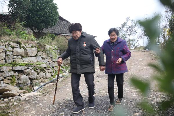 ????從湖北省巴東縣城坐車?yán)@著山路行駛一個(gè)半小時(shí)后,記者來到官渡口鎮(zhèn)觀音巖村村民黃厚勇家中。黃厚勇是抗美援朝老兵黃忠茂的三兒子,老人跟他生活在一起。