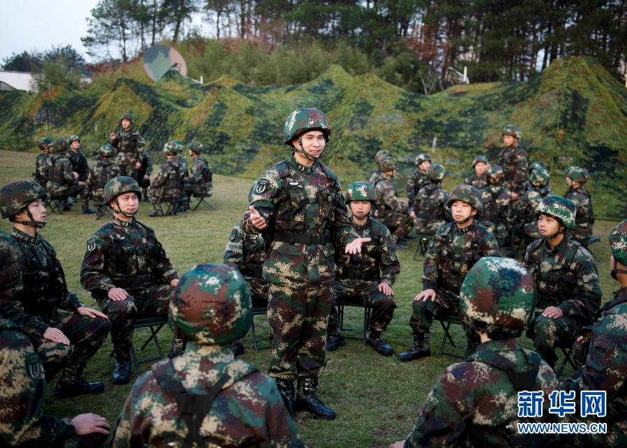 演訓(xùn)間隙,俞細(xì)文在野外訓(xùn)練場組織理論宣講(12月11日攝)。新華社發(fā)(劉明松 攝)