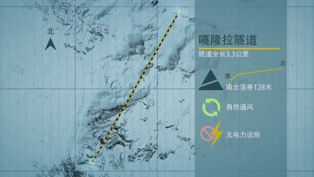 ▲嘎隆拉隧道南北高差達128米,相當于40層樓的高度。