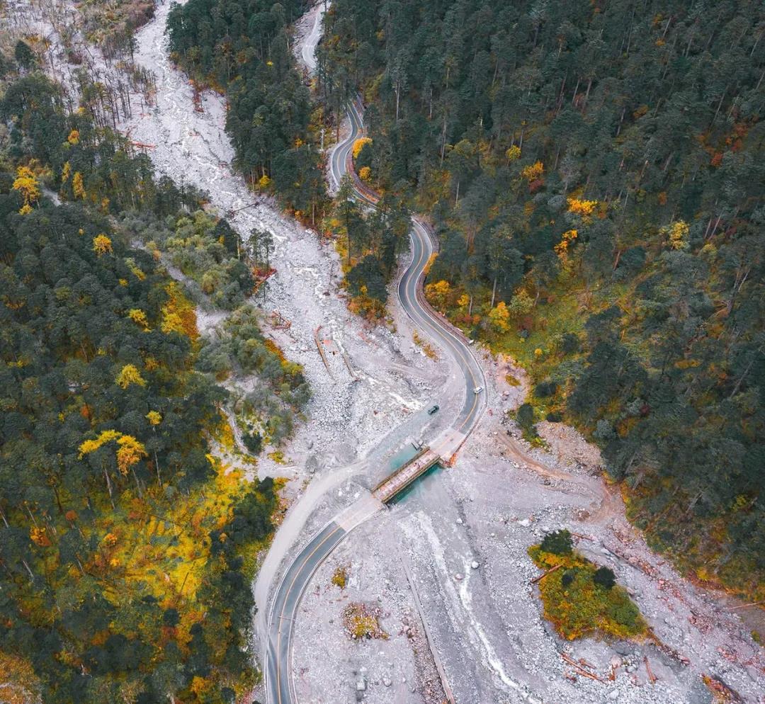 印度洋暖濕氣流沿雅魯藏布江北上,遇雪山阻隔,使墨脫年降水量達到4000mm。地震、泥石流、滑坡、塌方、水毀、雪害等危害公路建設(shè)的地質(zhì)災害和自然災害均集中在這一地區(qū),修建墨脫公路一度被認為不可能的事。