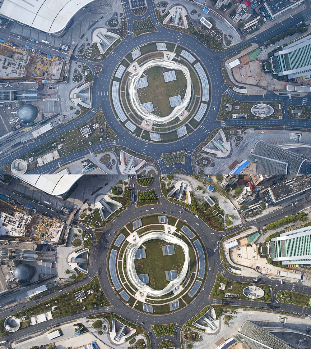 ▲上圖為1月26日的武漢光谷廣場(chǎng)綜合體;下圖為4月8日的武漢光谷廣場(chǎng)綜合體。新華社記者 熊琦 攝