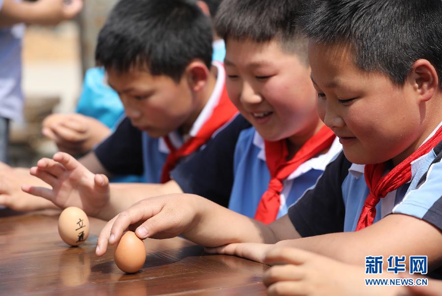 5月5日,在浙江杭州臨安區(qū)天目山鎮(zhèn)武山村,幾名小學(xué)生在體驗(yàn)“立蛋”的傳統(tǒng)習(xí)俗。立夏節(jié)氣將至,人們參加繪彩蛋、稱(chēng)體重等活動(dòng),體驗(yàn)傳統(tǒng)民俗。新華社發(fā)(胡劍歡 攝)
