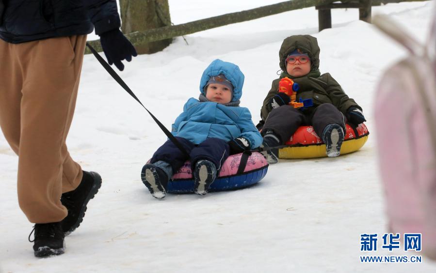 1月24日,孩子們?cè)诎锥砹_斯首都明斯克郊區(qū)的民族建筑博物館內(nèi)乘坐滑雪氣墊圈,感受雪趣。正值隆冬冰雪時(shí)節(jié),博物館舉辦主題游園活動(dòng),讓人們感受白俄羅斯傳統(tǒng)冰雪文化的樂趣。新華社發(fā)(任科夫攝)