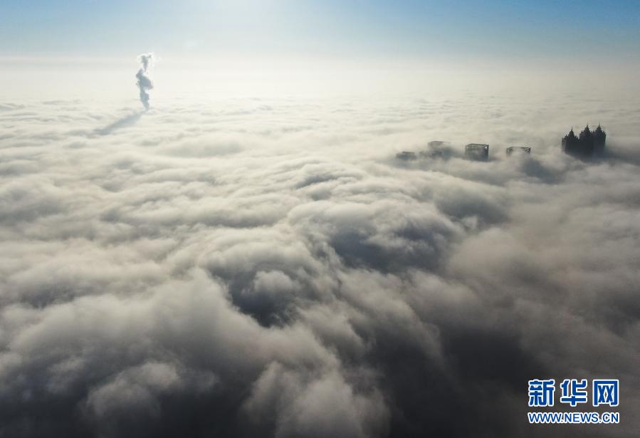 這是1月26日在沈陽(yáng)市渾南區(qū)拍攝的市內(nèi)霧景(無(wú)人機(jī)照片)。新華社記者 楊青 攝