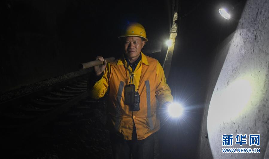 在廣西河池境內(nèi)黔桂鐵路線上的鄧山隧道,中國鐵路南寧局集團有限公司柳州工務(wù)段的4名看守工輪換值班,依靠手電筒在黑暗中穿行,及時巡查隧道中可能出現(xiàn)的各種隱患,確保每天經(jīng)隧道運行的59趟客貨列車春運安全。鄧山隧道全長773米,是一個需要人員全天候看守的鐵路隧道。