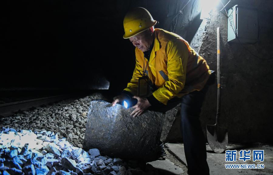 在廣西河池境內(nèi)黔桂鐵路線上的鄧山隧道,中國(guó)鐵路南寧局集團(tuán)有限公司柳州工務(wù)段的4名看守工輪換值班,依靠手電筒在黑暗中穿行,及時(shí)巡查隧道中可能出現(xiàn)的各種隱患,確保每天經(jīng)隧道運(yùn)行的59趟客貨列車春運(yùn)安全。鄧山隧道全長(zhǎng)773米,是一個(gè)需要人員全天候看守的鐵路隧道。