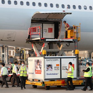 2月19日,在香港國際機場,工作人員將裝載疫苗的貨柜箱送往指定地點進(jìn)行儲存。新華社記者 李鋼 攝