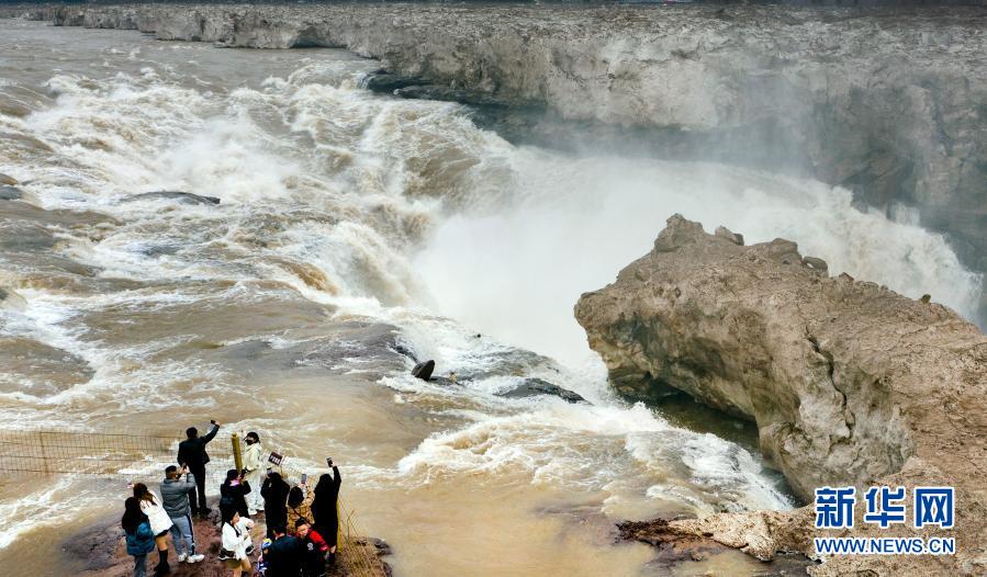 從2月24日起,陜西壺口瀑布景區(qū)恢復(fù)對(duì)外開放。隨著氣溫回升,黃河上游冰雪消融,水量增大,壺口瀑布的主瀑布恢復(fù)了往日奔騰咆哮的氣勢(shì),黃河之水奔騰而下,形成壯觀瀑布群。