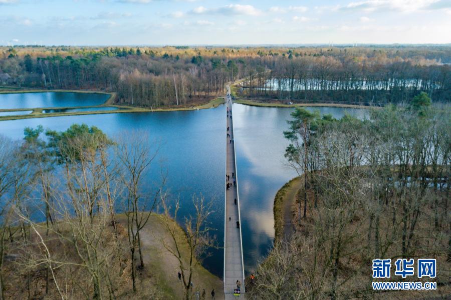 2月27日,人們在比利時小鎮(zhèn)波克萊克附近的“水中通道”中前行(無人機照片)。