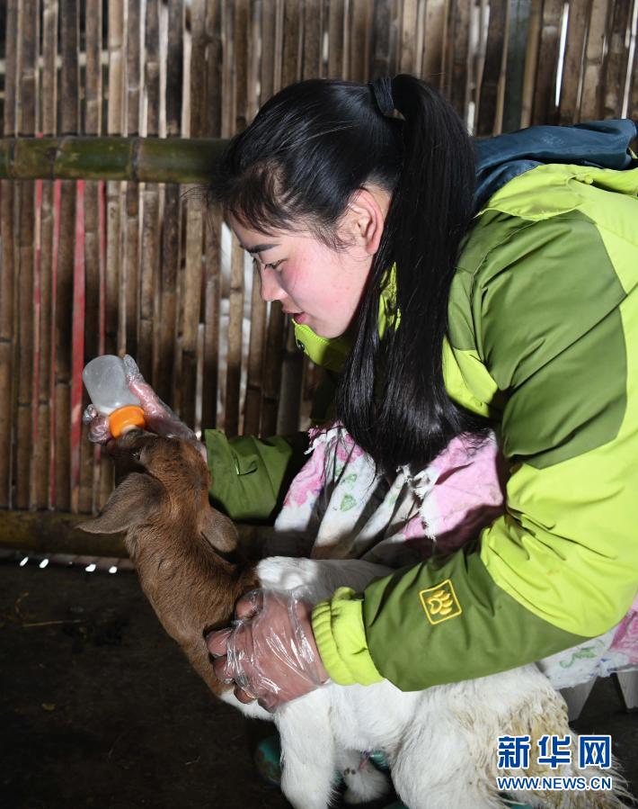 張志菊在自家農(nóng)場(chǎng)里給小羊喂奶(2月27日攝)。