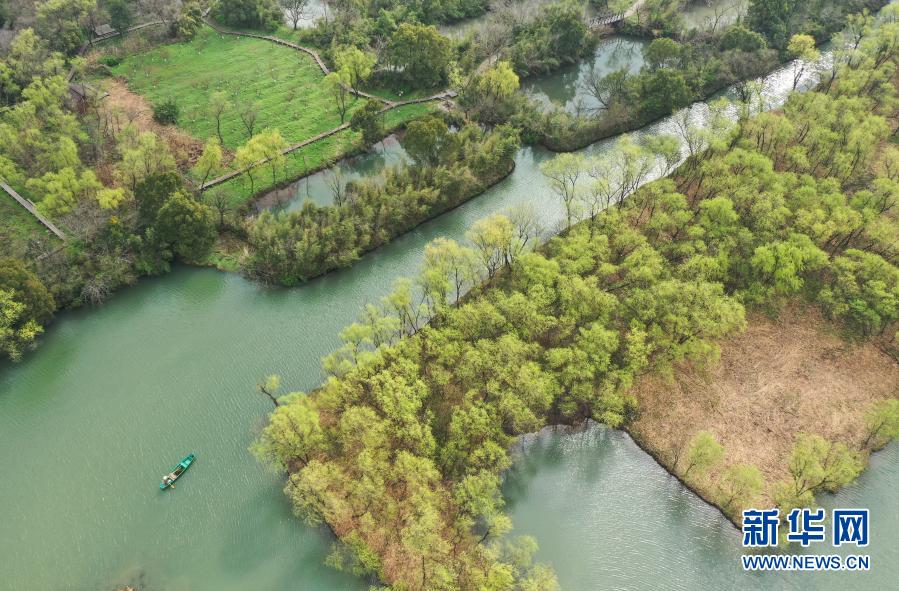 早春時(shí)節(jié),浙江杭州西溪濕地新綠初綻,春光明媚。