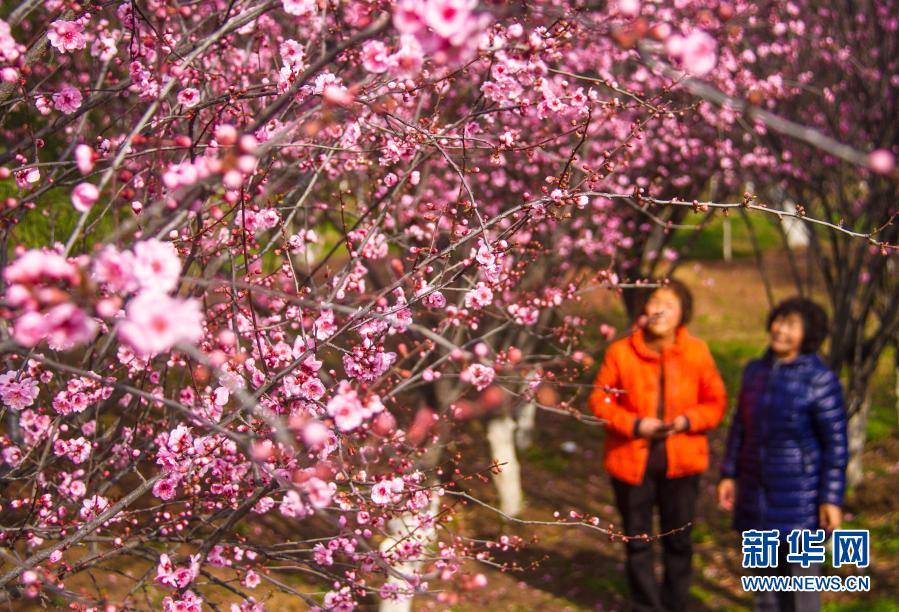3月2日,游客在河南省南陽市梅城公園觀賞綻放的梅花。新華社發(fā)(高嵩 攝)