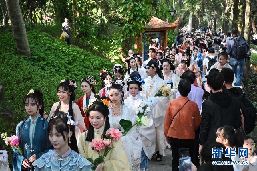 3月13日至14日,第二屆福州西湖花朝節(jié)系列活動(dòng)在福州西湖公園舉行,流觴詩會(huì)、漢服雅集、百花祭典、簪花游園等10場活動(dòng)再現(xiàn)花朝節(jié)傳統(tǒng)民俗文化之美。