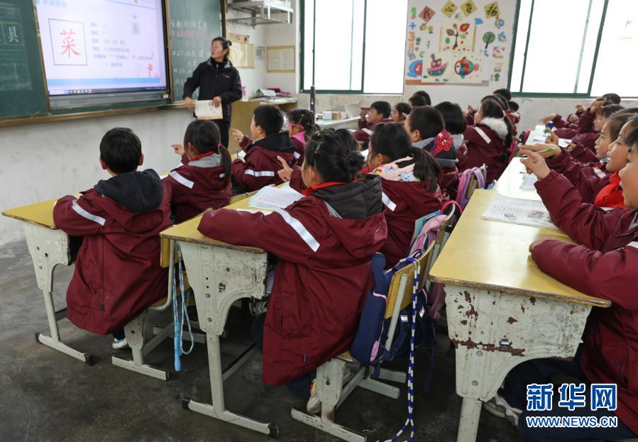 騎路小學(xué)二年級(jí)學(xué)生在教室上課,跳繩掛在他們的座椅背上(3月9日攝)。新華社記者 楊磊 攝