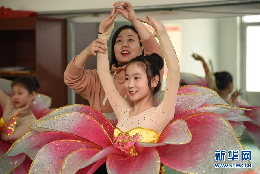 3月17日,河北省河間市第一實(shí)驗(yàn)小學(xué)學(xué)生在老師指導(dǎo)下練習(xí)舞蹈。