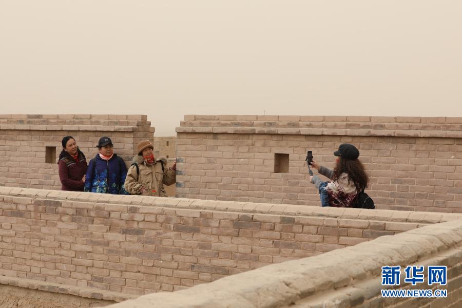 3月17日,游客在嘉峪關關城景區(qū)游覽。新華社記者 張智敏 攝