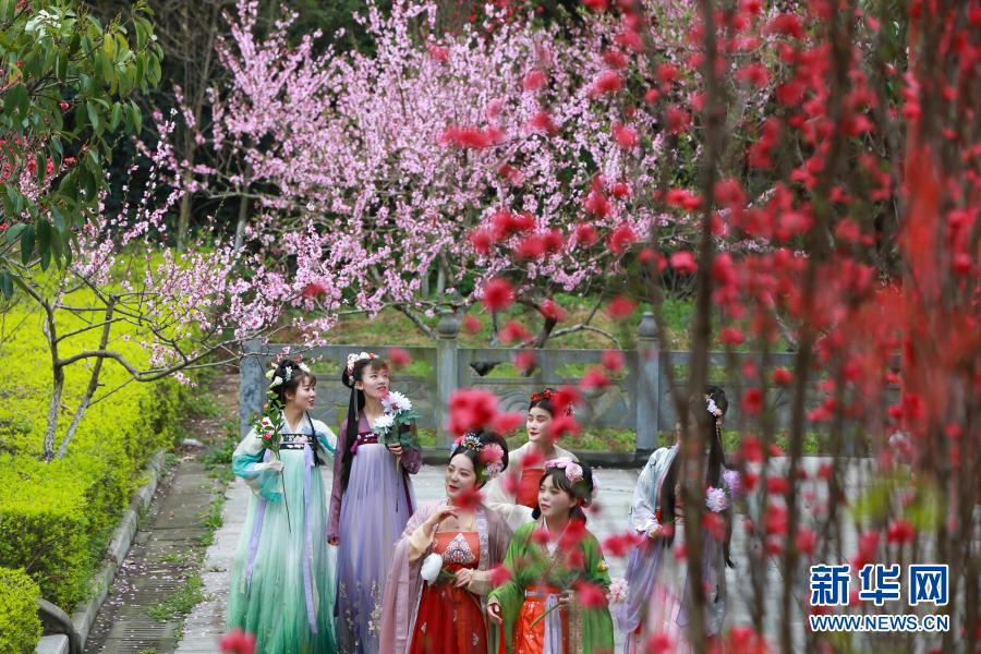 3月20日,在湖北省襄陽(yáng)市黃家灣景區(qū),漢服愛好者踏青賞花。
