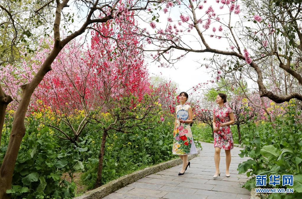 3月26日,“春暖浦東 十里桃花”2021上海桃花節(jié)開(kāi)幕儀式在浦東南匯惠南鎮(zhèn)桃花村舉行,兩名當(dāng)?shù)仄炫蹍f(xié)會(huì)的姑娘在桃花村賞花。