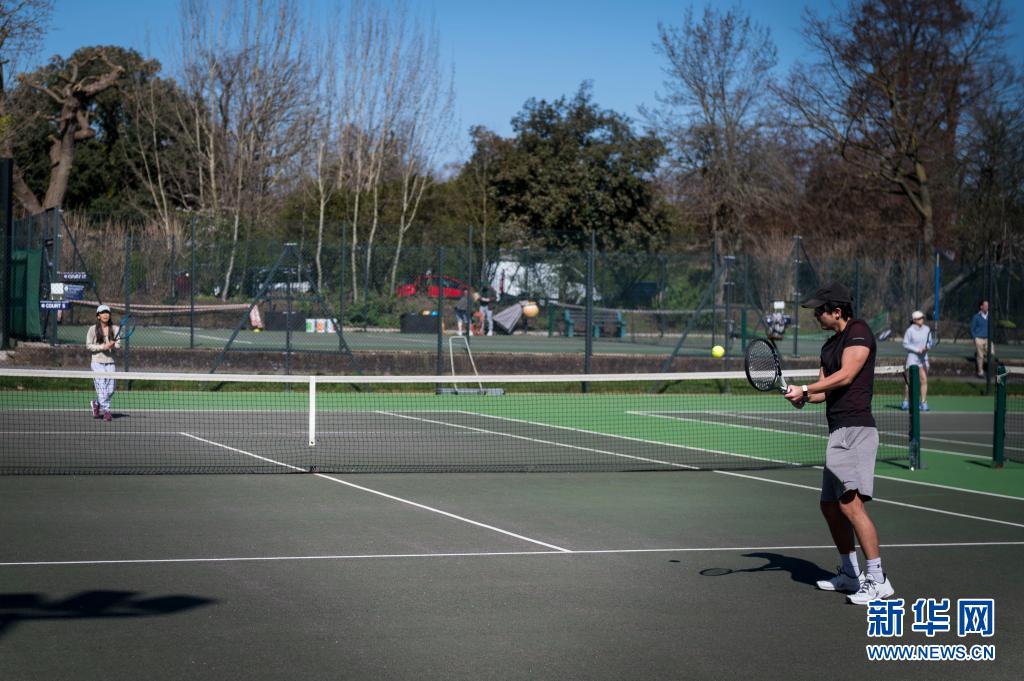3月29日,人們在英國倫敦?cái)z政公園的網(wǎng)球場打網(wǎng)球。