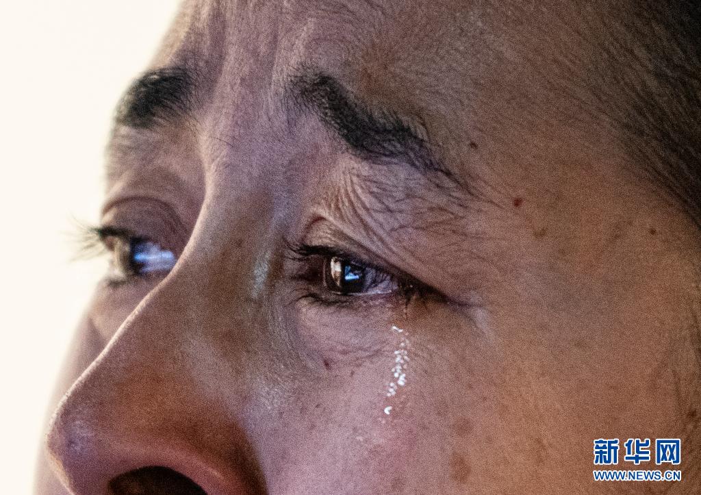 4月3日,在新疆警史館,瑪依努爾追憶愛人艾熱提時淚流滿面。