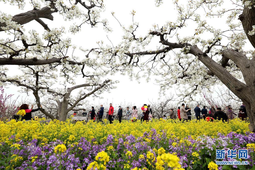 4月5日,游客在河北省石家莊晉州市周家莊鄉(xiāng)梨園內(nèi)踏青。